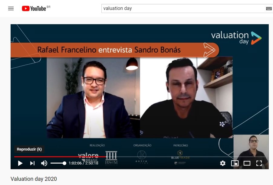 O Valuation Day pode ser acessado no Youtube pelo link:https://youtu.be/44WXzw3scrY