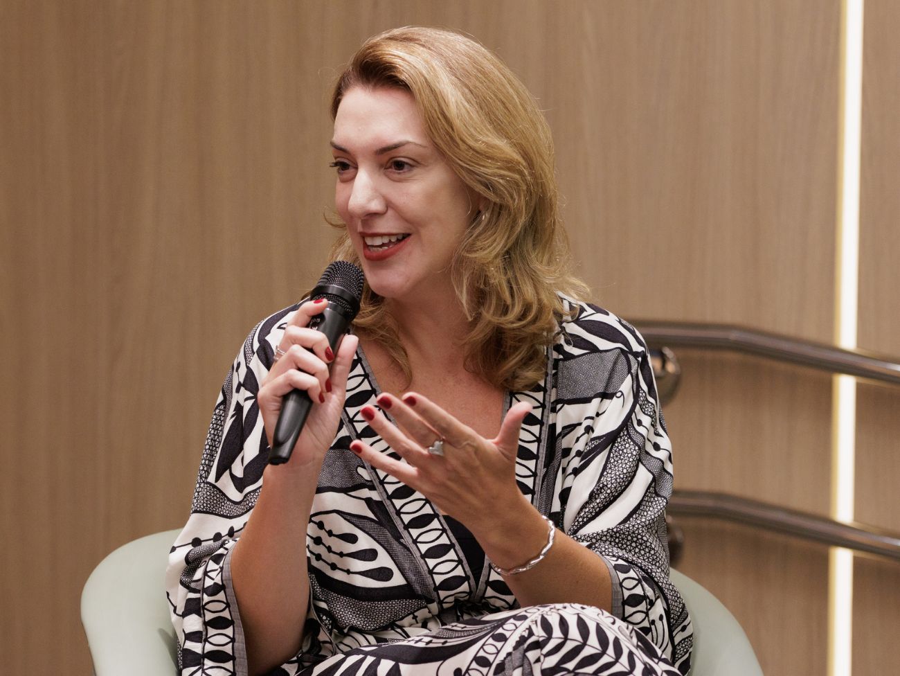 Luciana DÉlboux, diretora de pessoas da Ourofino Agrociência, falou de desafios na sua carreira até chegar à liderança de grupos empresariais e expressou que, entrar num lugar repleto de mulheres talentosas, como no escritório, foi uma experiência gratificante. “Se vocês estão aqui é porque têm talento: vocês sabem onde estão, sabe onde chegaram, então estar aqui e ver tantas mulheres jovens desenvolvendo suas carreiras me deixa muito feliz”, destacou.