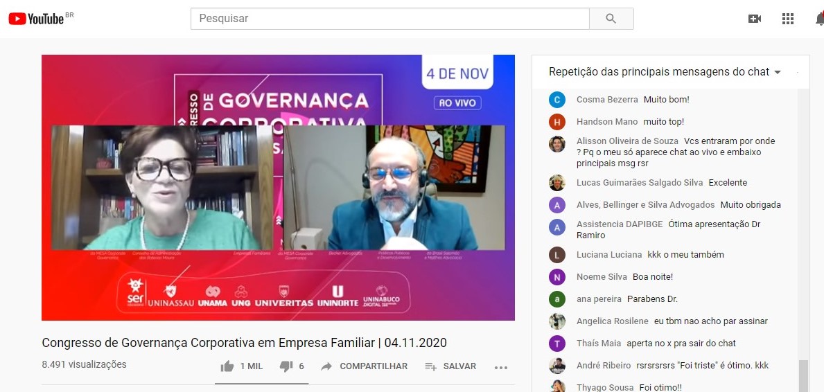 Na última quarta-feira (4), o grupo Ser Educacional, da Universidade Guarulhos (UNG), promoveu um evento com palestras e discussões com nomes de peso no setor jurídico nacional. O Congresso de Governança Corporativa em Empresa Familiar foi dividido em três diferentes painéis e contou com a presença de profissionais como Marcelo Vianna Salomão, Herbert Steinberg, Sérgio Modra, Gabriela Baumgart, Richard Doern e Luiz Marcatti. Transmitidos pelo Youtube do canal “LeiaJá”, os encontros gratuitos tiveram como objetivo discutir maneiras de colocar em prática um sistema de governança corporativa em que o planejamento e alinhamento entre sócios e funcionários está sempre presente.